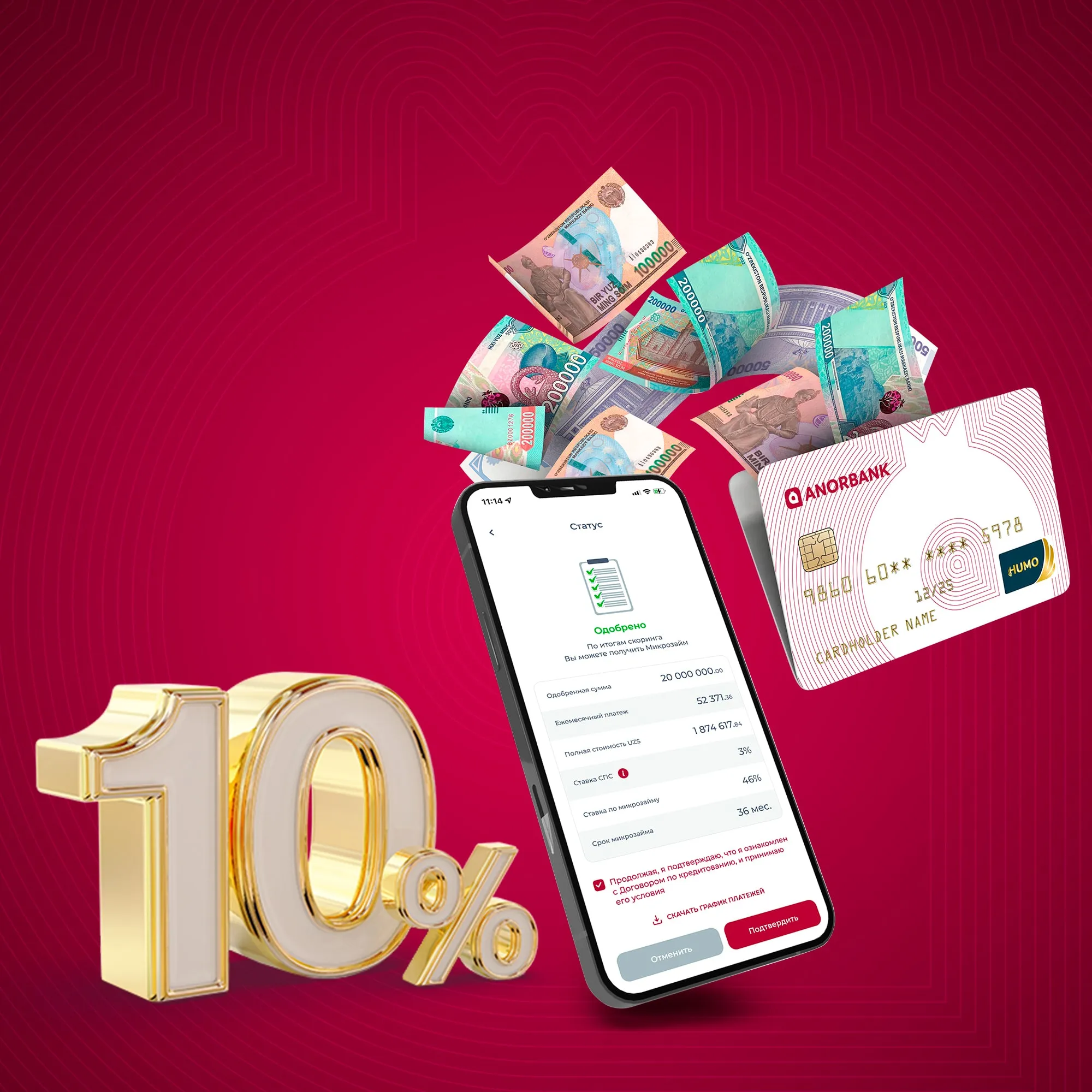 Только до 30 ноября включительно, клиенты АО «ANOR BANK» смогут оформить «Удобный микрозайм» до 50 млн. сум со скидкой 10% на годовую ставку