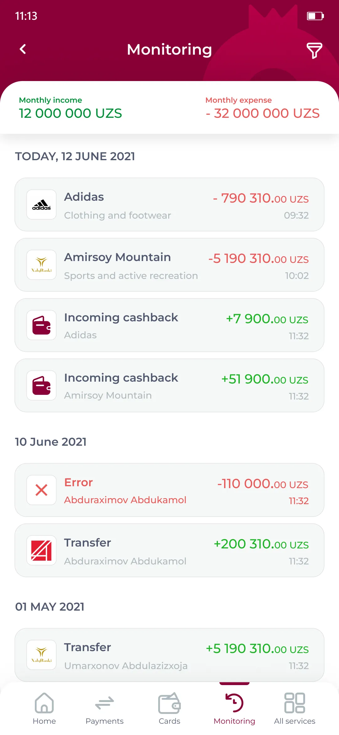 The report is automatically sent to the mobile application or online banking via PUSH notification. You can also see all the payments made via mobile application or online banking.