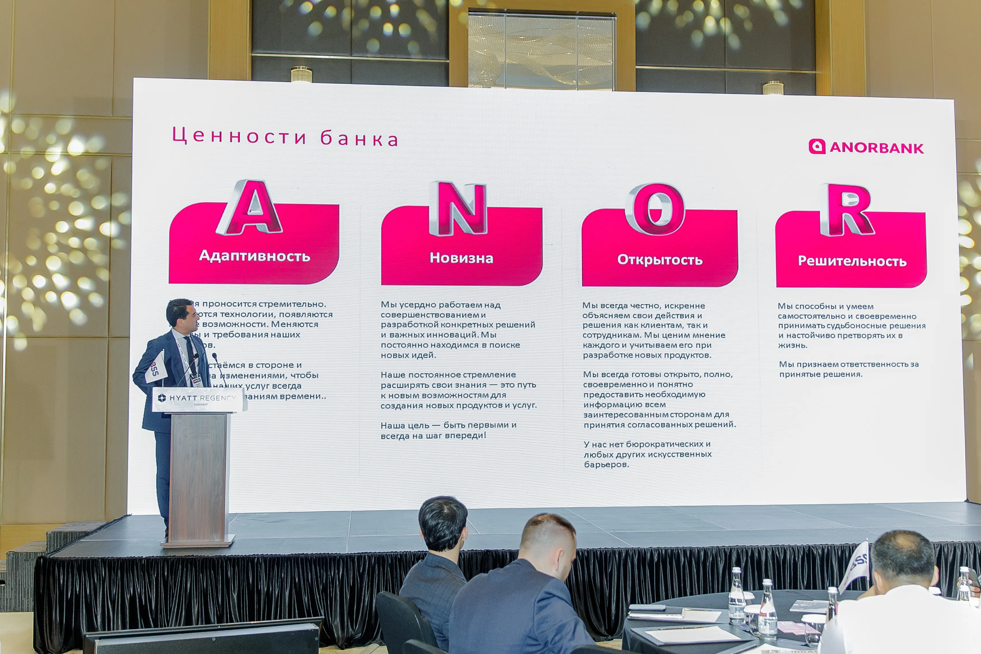 На мероприятии с речью выступил заместитель председателя правления ANORBANK Икром Шукуров. Он рассказал об основных отличиях ANORBANK от традиционных офлайн банков, его цифровой сущности, а также дальнейших планах по развитию.