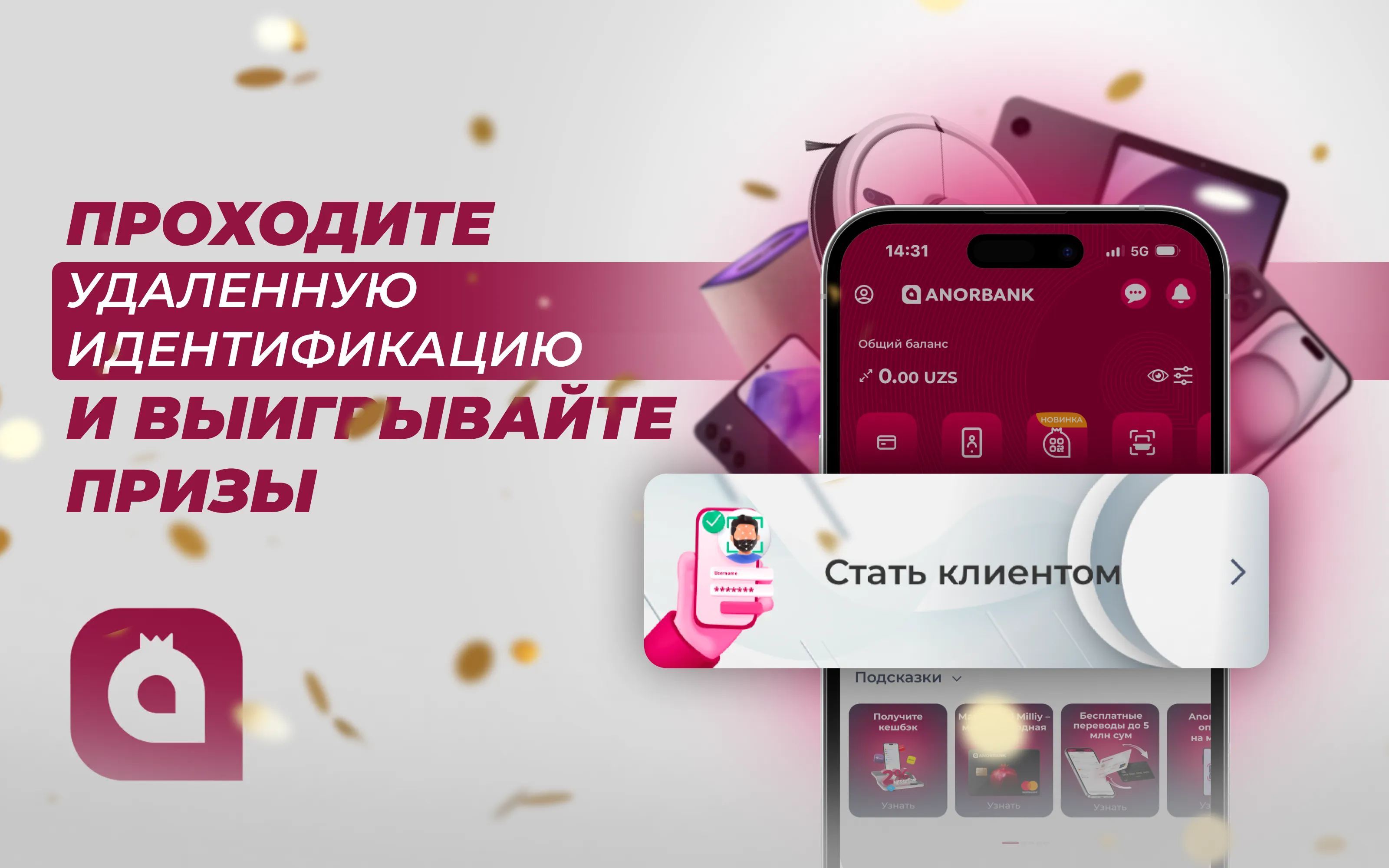 Мы запускаем специальную акцию с призами для новых и неидентифицированных пользователей! Чтобы стать участником достаточно пройти процесс удаленной идентификации и Вы получите шанс выиграть один из 18 ценных призов.