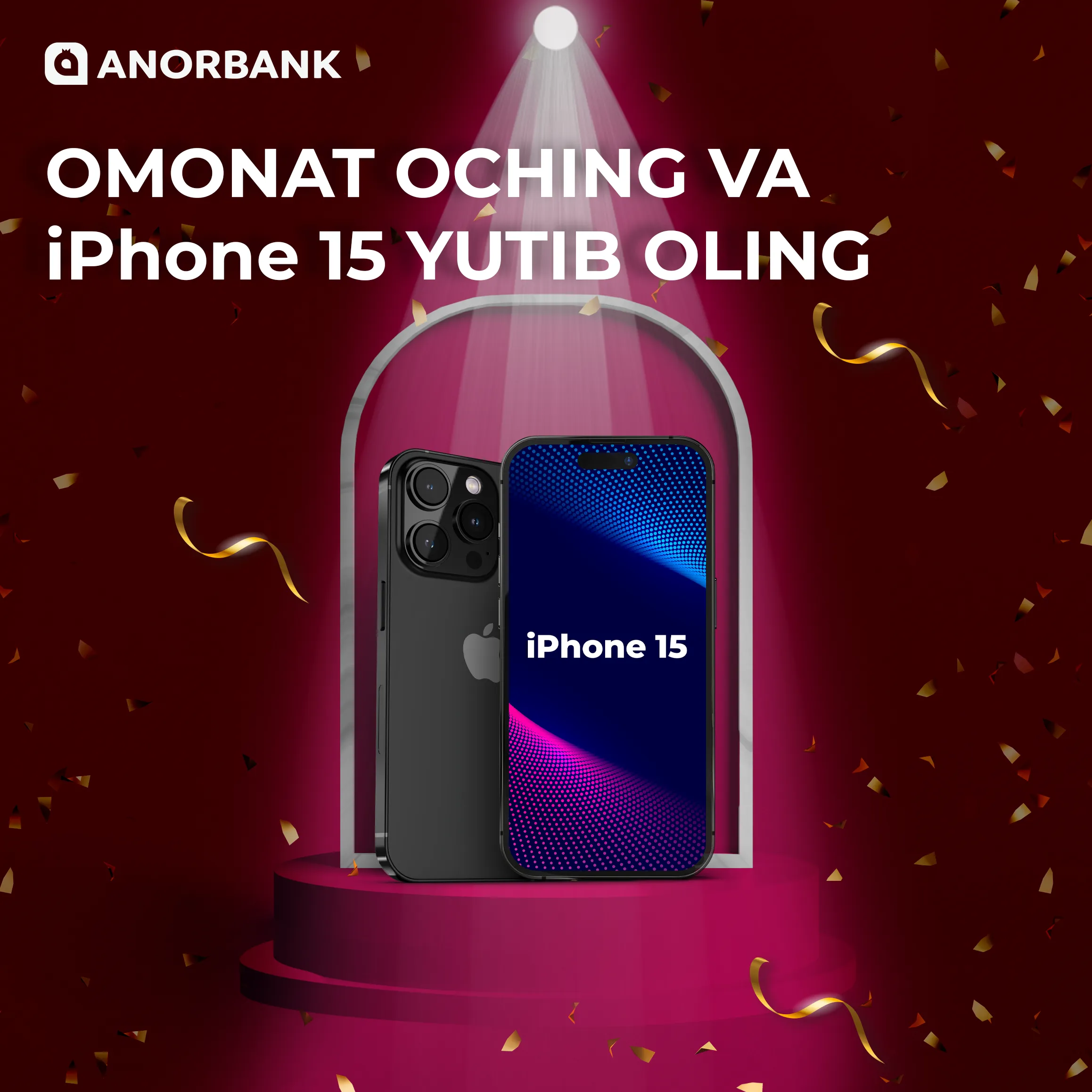 Aksiyada ishtirok eting! 1-oktabrgacha omonat oching va avtomatik tarzda 5 ta “iPhone 15” sovrinli o‘yinining ishtirokchisiga aylaning.